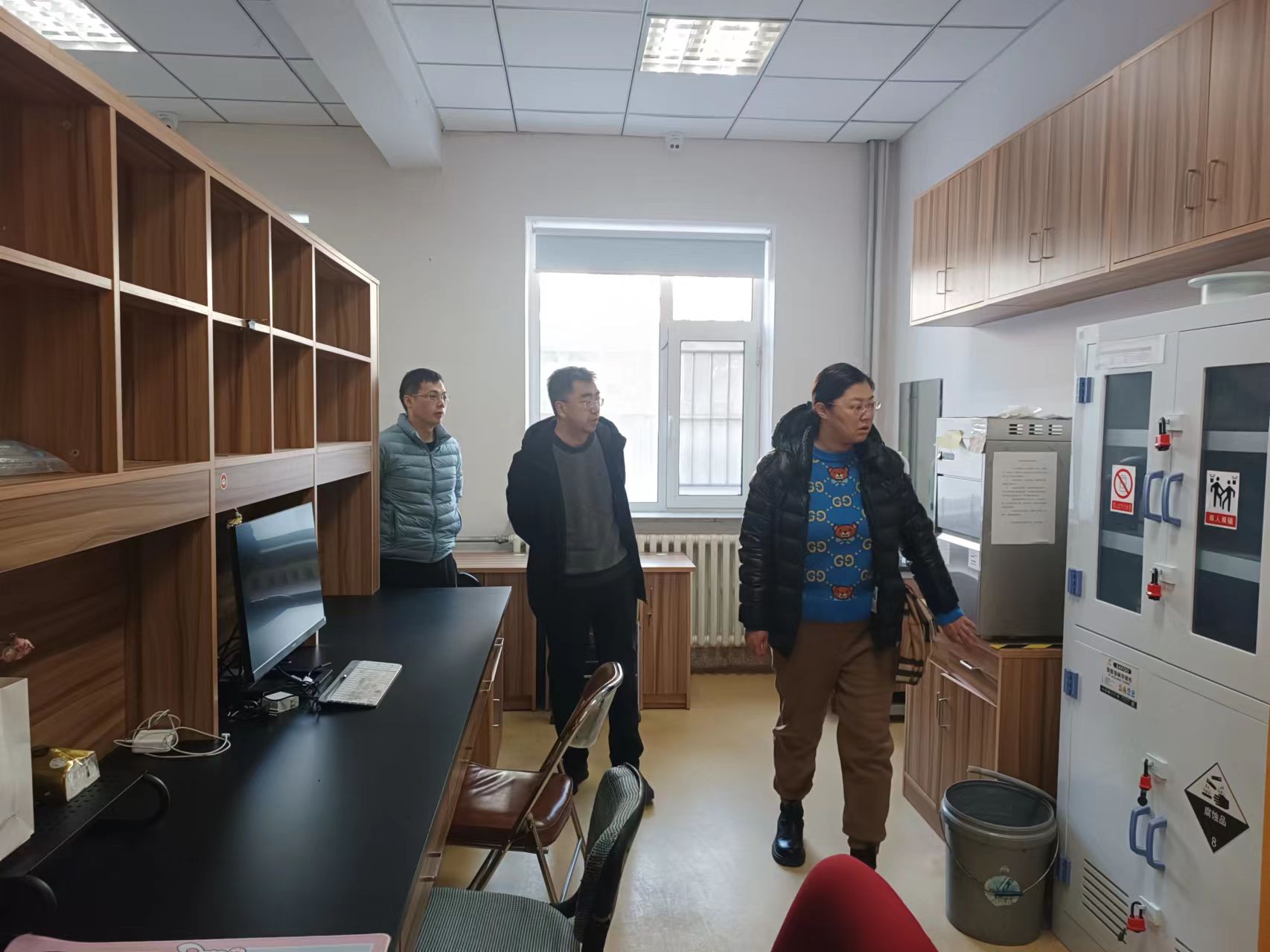 1月27日上午,韩月波、李峰、行政综合办公室主任杨鹏、科研实验室助理张美双组成检查组,结合公司下发《高校消防安全整治清单》和《公司实验室消防安全整治清单》要求的检查内容,对行政办公楼以及科研实验室进行全面检查工作,全面筛查各行政办公室以及科研实验室消防及安全隐患,检查实验室管理及导师值守及监督情况。检查期间,韩月波书记与同学们亲切交流,详细了解大家的学习生活状态,全面掌握留校员工假期安排、实验、学习及生活等情况。她叮嘱同学们要提高安全意识,严格遵守公司假期实验室管理相关要求。走访过程中,对办公室的电源与水源等进行了检查,同时重点对含有易燃易爆物品及其他危险源的实验室进行全面排查,明确安全责任,落实安全措施。结合1月20日由李峰副经理带队,实验中心主任张秀英、科研实验室助理张美双对英国上市官网365护理教学实验室、康复治疗教学实验室、以及科研实验室寒假前检查结果,以及此次检查中发现的安全隐患问题,韩月波书记、李峰副经理对行政办公楼及各实验室安全隐患进行了全面梳理,指出要针对存在的问题建立安全隐患台账,逐条解决。通过本次走访和安全检查,进一步排查了公司办公楼及实验室相关危险因素,全力保障公司师生度过一个安全祥和的假期。