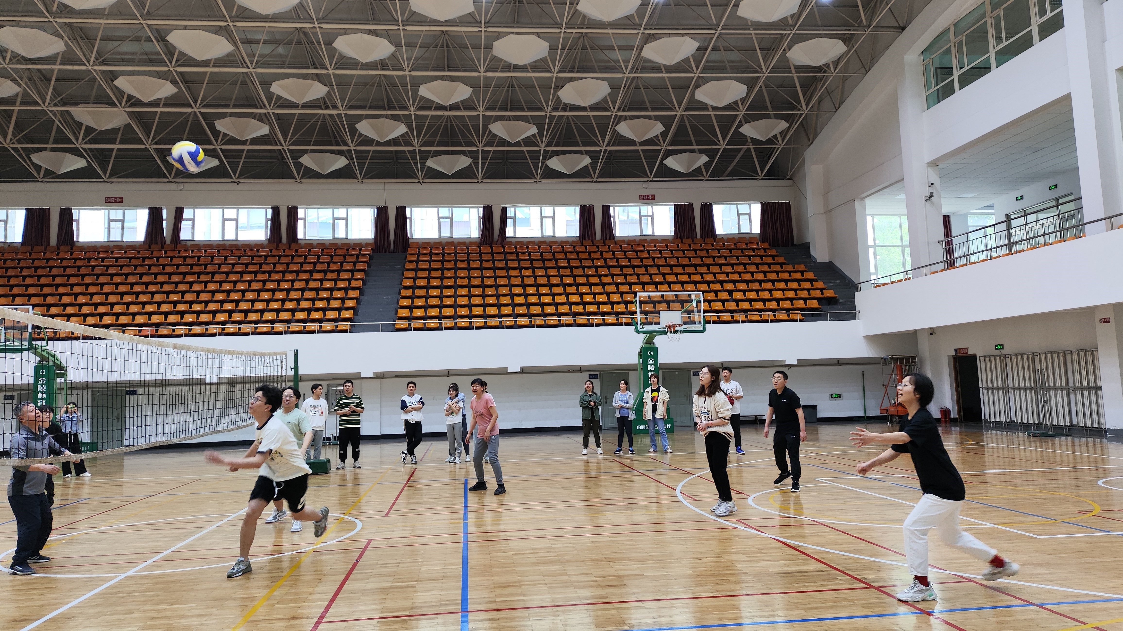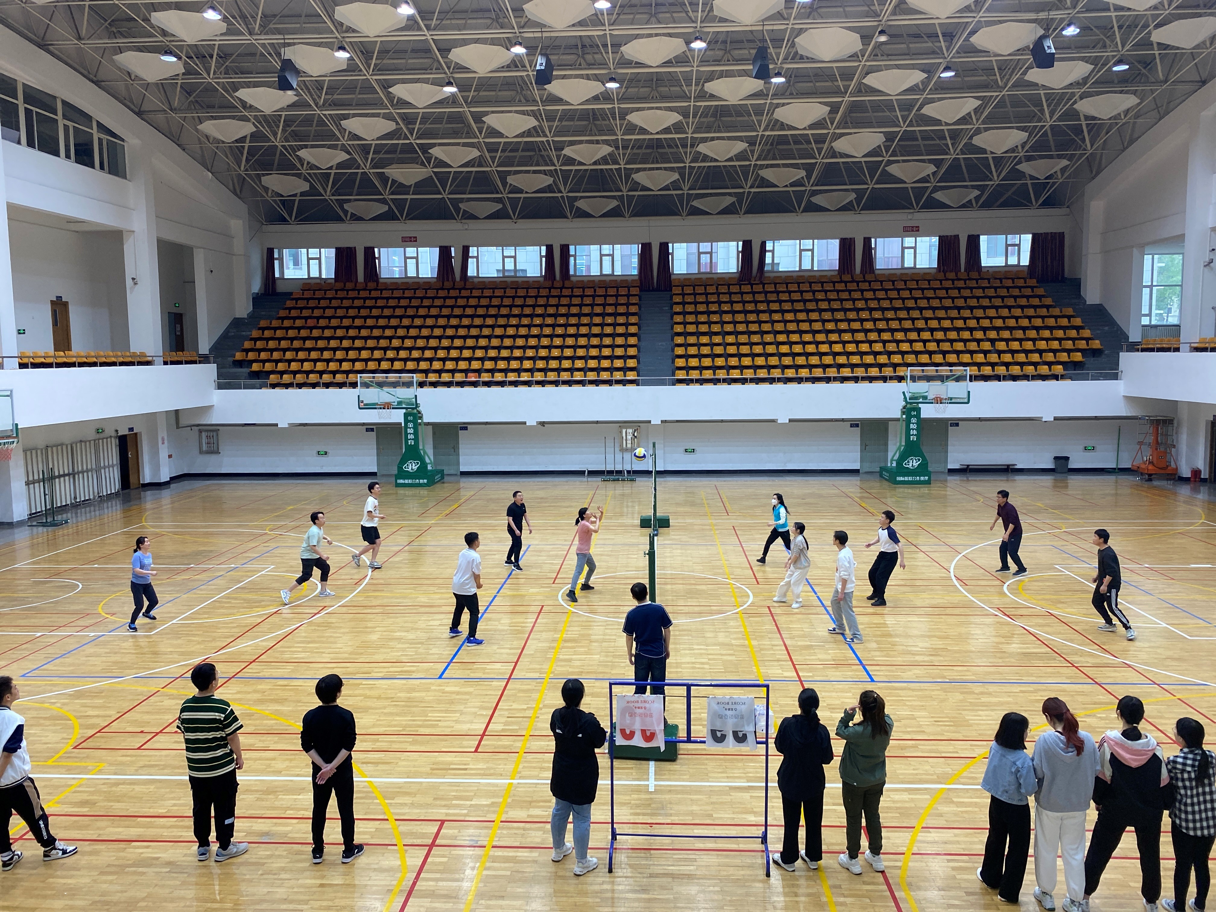 赛场上,一轮轮精彩的对战,一道道优美的弧线,一次次扣人心弦的发球、传球、扣球和拦网,无不显示着老师和同学们的实力与智慧。赛场外,师生们积极观赛,纷纷为自己支持的团队和老师加油鼓劲。