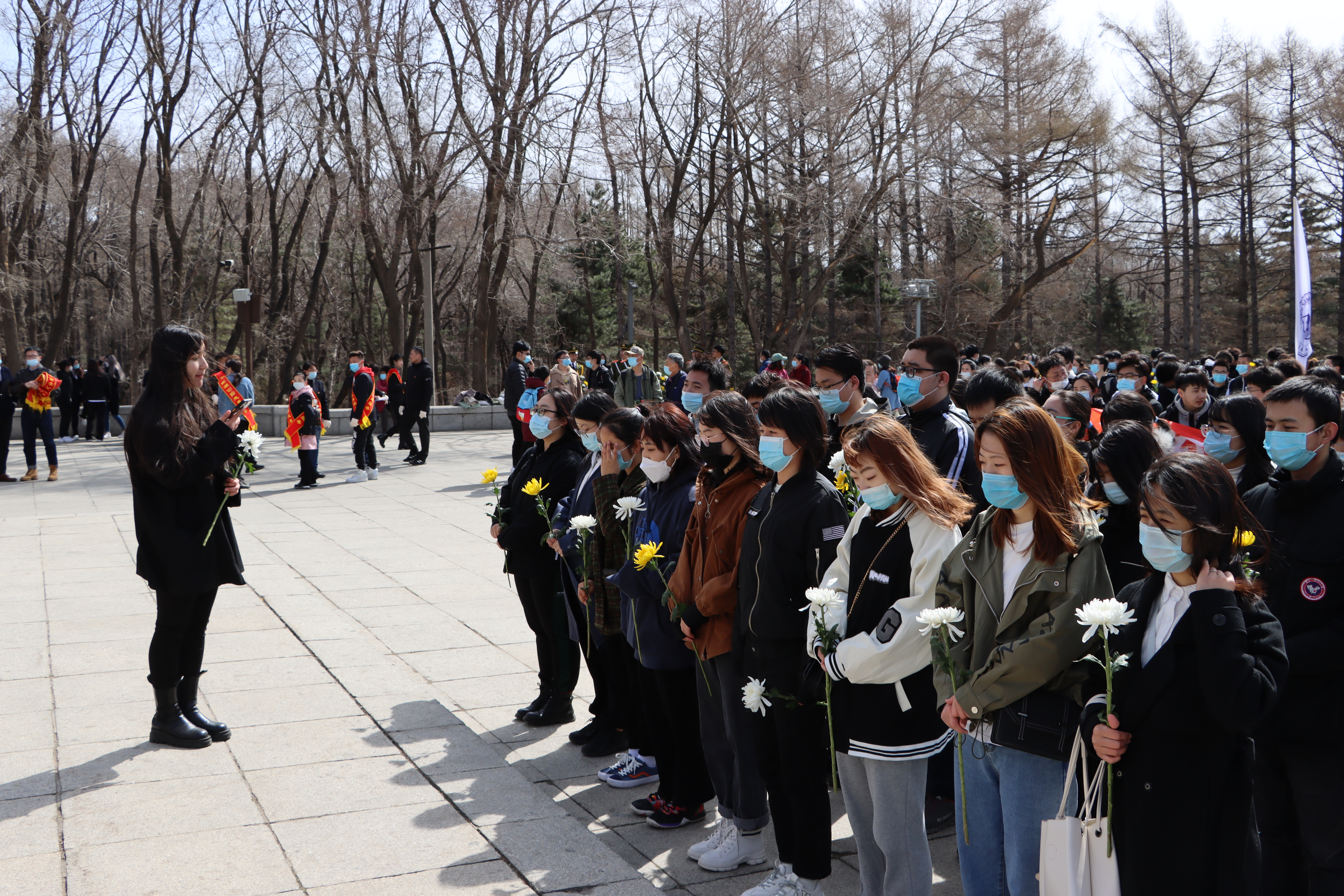 早上8点,同学们步行前往长春市解放纪念碑。到达解放纪念碑后,同学们进行了默哀致敬仪式,随后向解放碑敬献鲜花,表达对英勇无畏的革命先烈的敬仰和追思,同时将革命志士的信仰、坚贞、崇高和不朽,中华民族不屈不挠的民族精神铭刻在心中。